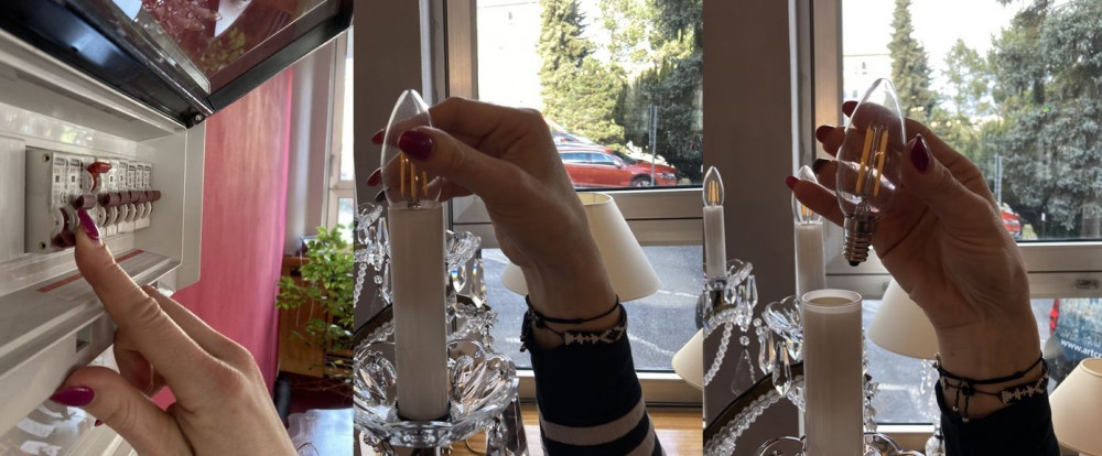 - Trennen Sie zunächst den Stromkreis der Leuchte vom Netz, indem Sie den Schutzschalter ausschalten, damit Sie keinen Stromschlag bekommen. Dann schrauben Sie die alte Glühbirne heraus. Wenn das nicht gelingt und vielleicht noch ein Stück übrig ist, nehmen Sie einfach eine Zange, führen Sie sie in das Gewinde der Glühbirne ein und schrauben Sie die Glühbirne heraus.