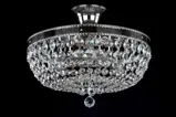 Die Kristall-Deckenleuchte hat einen Durchmesser von 35 cm und wird von innen mit drei Glühbirnen beleuchtet. Der Metallspiegel im oberen Bereich verstärkt die Helligkeit. Hochwertige Kristallglas-Verzierungen tauchen Ihren Raum in ein Farbenmeer. Der Kronleuchter eignet sich für kleinere Räume mit niedrigen Decken und harmoniert perfekt mit Wandleuchten im gleichen Stil. Er hängt an einem kurzen Rohr mit Deckenrosette. Sie können ihn in Gold oder Silber bestellen. Lesen Sie mehr