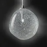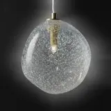 EOR200 wird mit einer speziellen Glasverarbeitungstechnologie hergestellt, die gewährleistet, dass jedes Stück ein absolutes Original ist. Die mundgeblasene Kugel mit unregelmäßiger Form und einem Durchmesser von 20 cm ist ein Meisterwerk, das die Seele und das Können von Glasmachermeistern in sich trägt. Jede Kugel ist ein Unikat dank der unterschiedlich großen Blasen und Unregelmäßigkeiten in der Struktur, die der Leuchte einen unverwechselbaren Charakter verleihen.